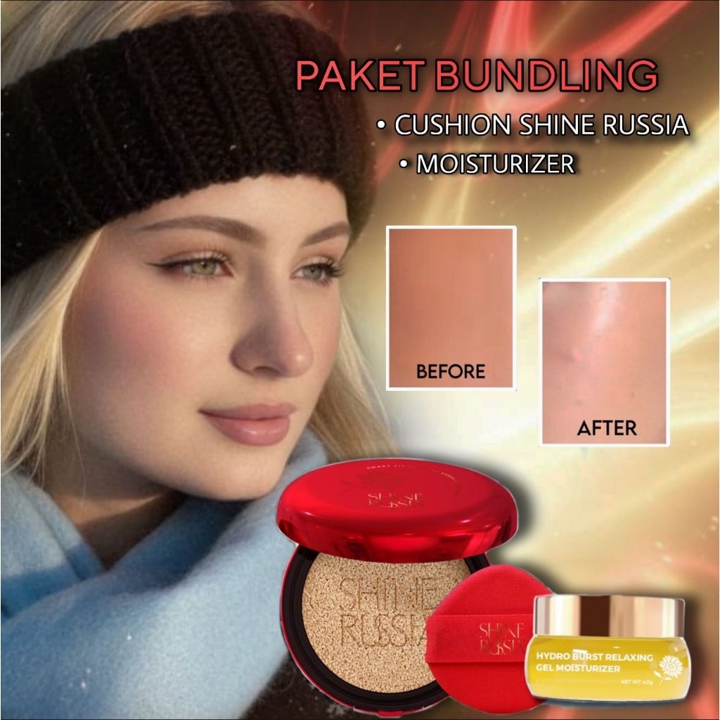 Shine Russia + PAKET BUNDLING Cushion Bunga Matahari Dengan Refill & Moisturizer Hydro Burst Relaxing Gel Perawatan Waja