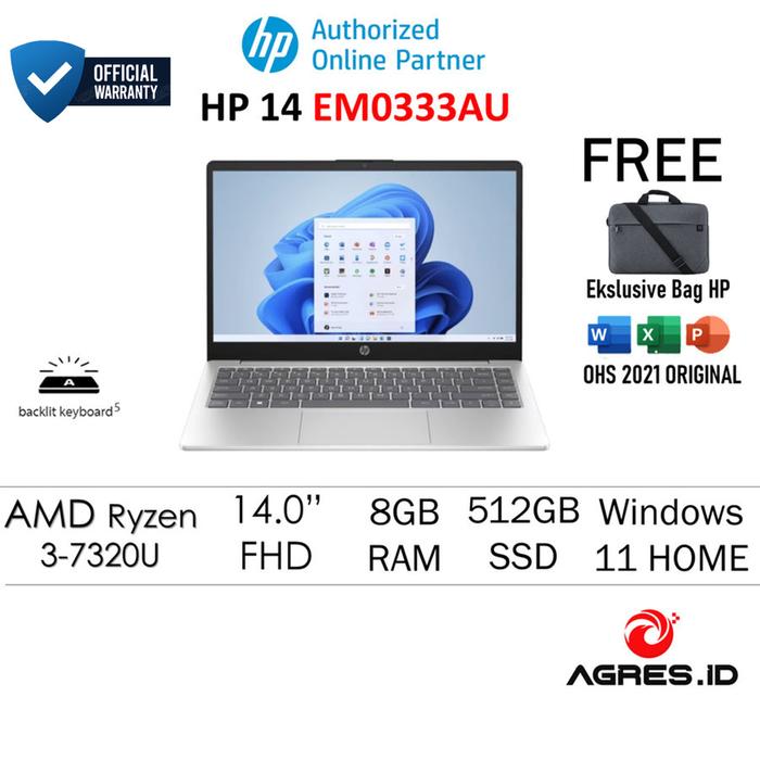 Laptop Hp 14S Amd Ryzen 3 7320U 8Gb 512 Ssd 14.0Fhd W11+Ohs - Harga Terbaik, 8Gb/512Ssd