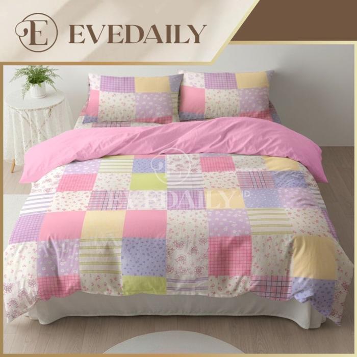 Bedcover Set Motif Cozy Garden Mix Baby Pink - 90X200 - 200X200 - Evedaily - 90X200, 10