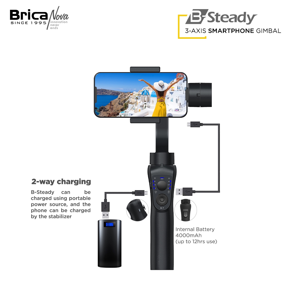 Brica B-Steady 3-Axis Gimbal Stabilizer For Smartphone And Action Camera Free Tripod Mini