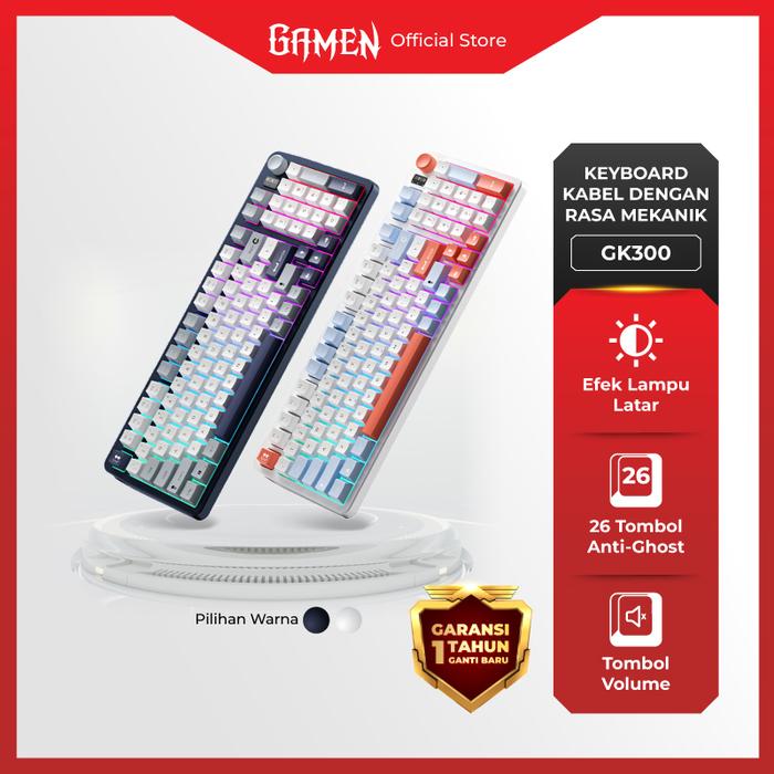 Gamen Gk300 Keyboard Gaming Kabel Keycaps Membrane Computer Lampu Rgb Multifunction Knob Anti-Ghosting - Garansi 1 T