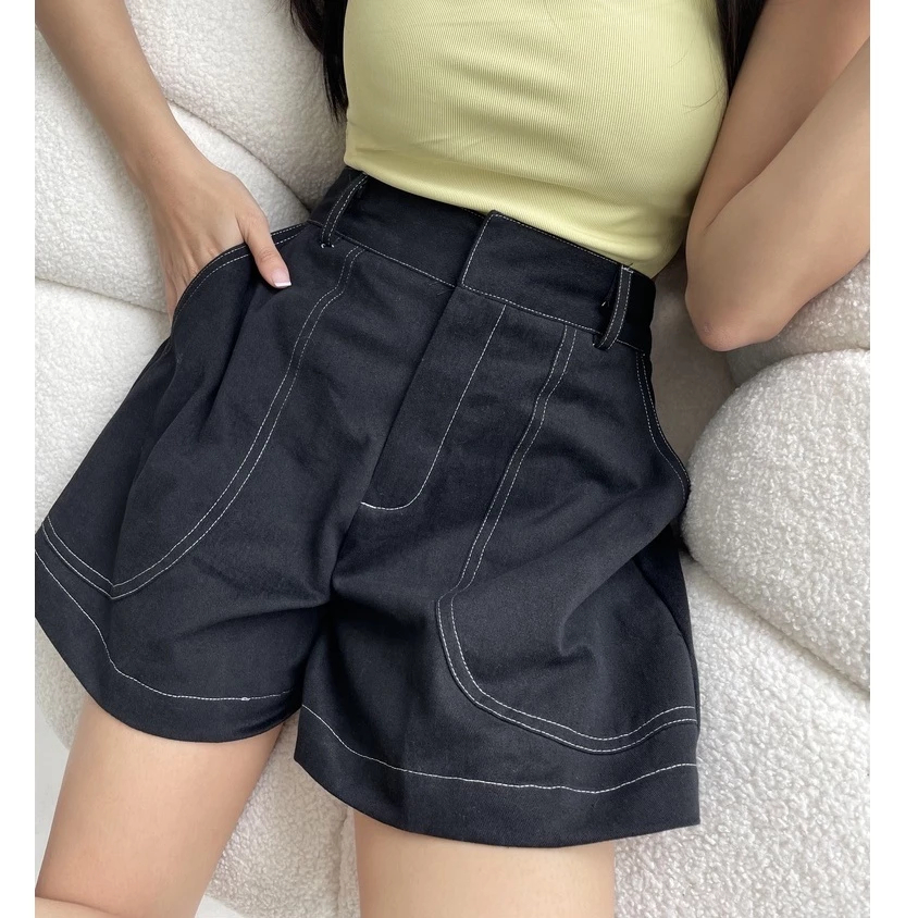 Hotpants Karina Contrast Stitch Short Premium Pants Celana Pendek Streach Wanita Denim Look Alike