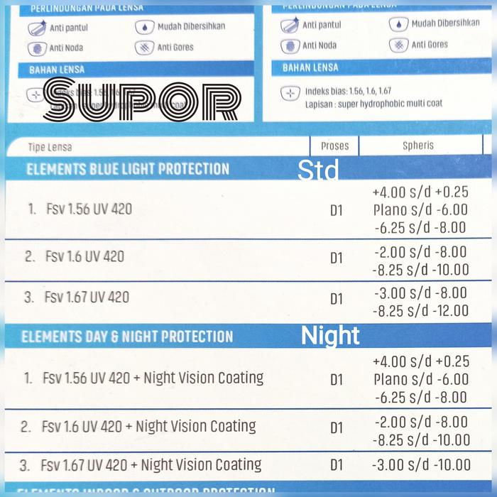 Lensa Kacamata Essilor Elements Anti Radiasi Blue Ray Drive Night Sv - 1.67 Tipis Blue