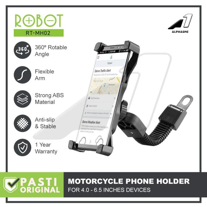 ROBOT RT-MH02 Holder HP Motor Spion Phone Stand Mount HP Aluminium - Hitam