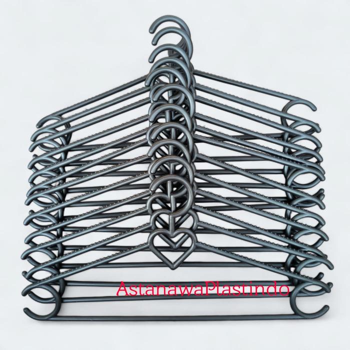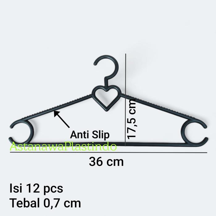 Murah 12 pcs Hanger rotan plastik lope dewasa gantungan baju warna tebal - Hitam Hemat