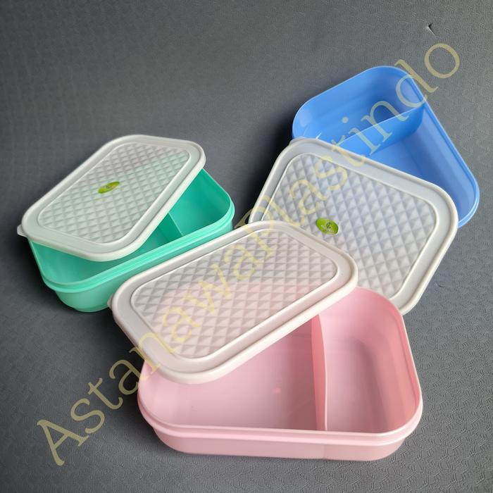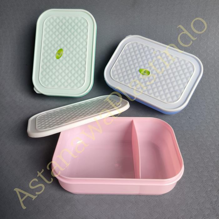 3 PCS - New Cornelius tempat nasi plastik dx kotak bekal lunch box 2 partisi warna Kitchenware - Pink Hemat