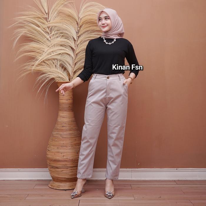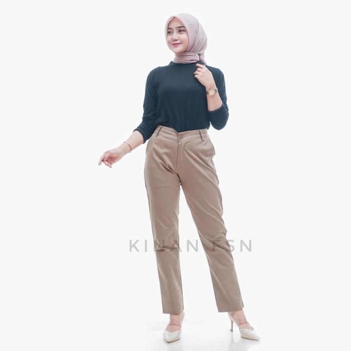 Celana Panjang Wanita Resleting Jumbo Kerja Karet Katun - Hitam, L