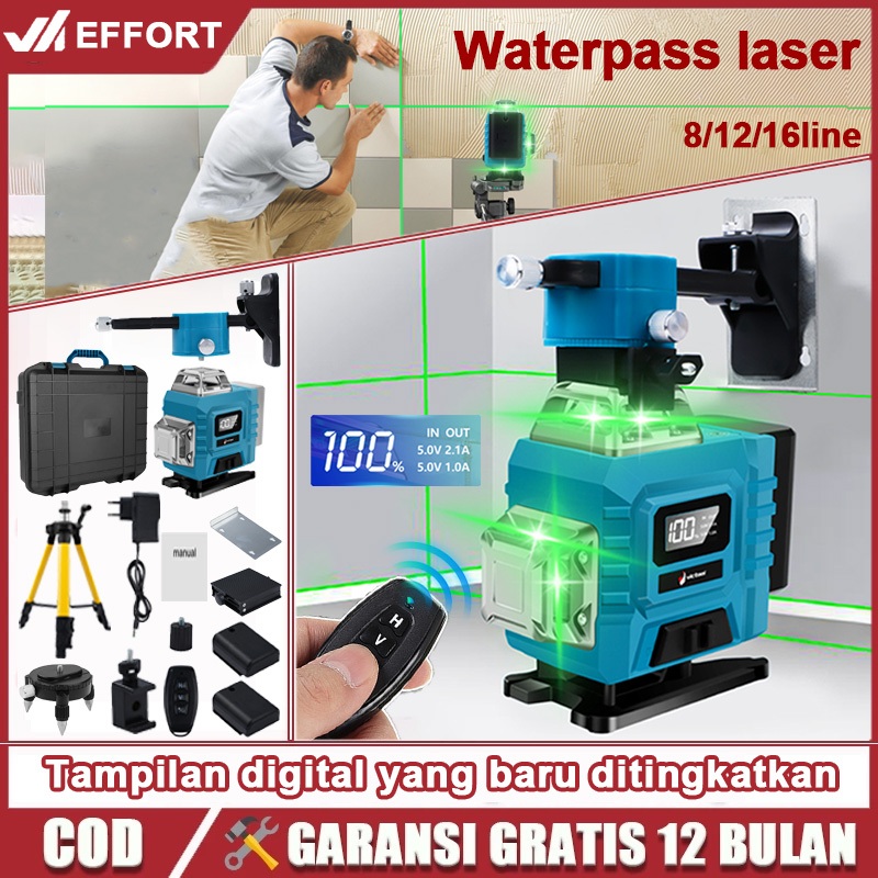 Effort Waterpass Laser Level 4D 8/12/16Lines Laser Bangunan Lampu Hijau Tingkat Laser Tampilan Digital Definisi Tinggi L