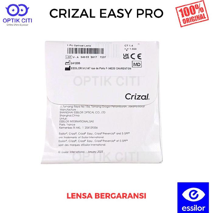 Lensa Kacamata Blueray Crizal Essilor Easy Pro 1.56 Blue Uv Capture Original
