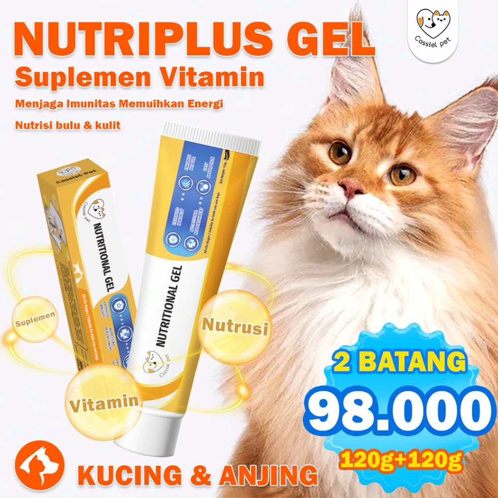 Cassiel Pet Vitamin Nutrisi Gel Anjing/Kucing 120G Atasi Hairball, Perbanyak Bulu & Tingkatkan Imun