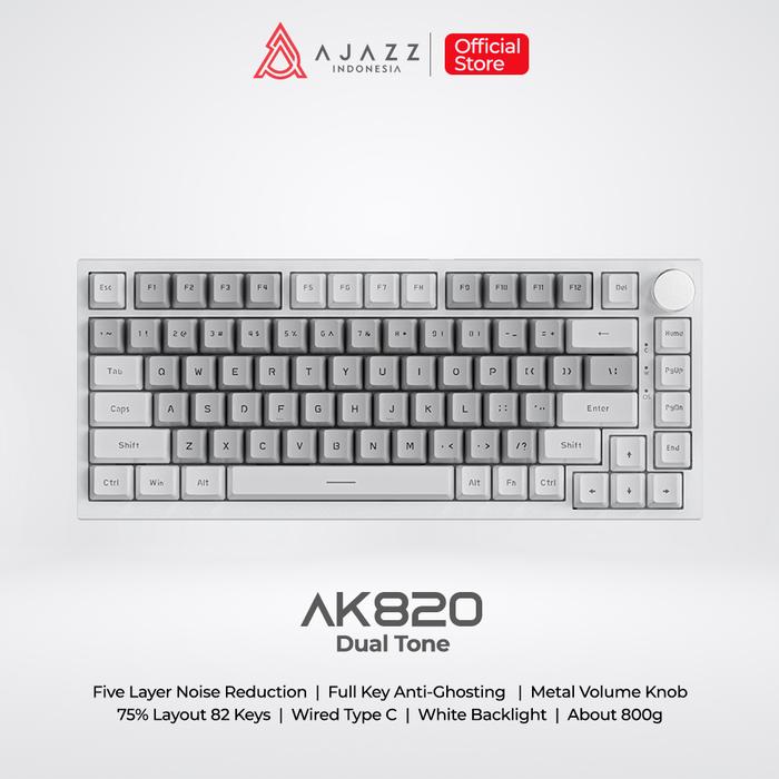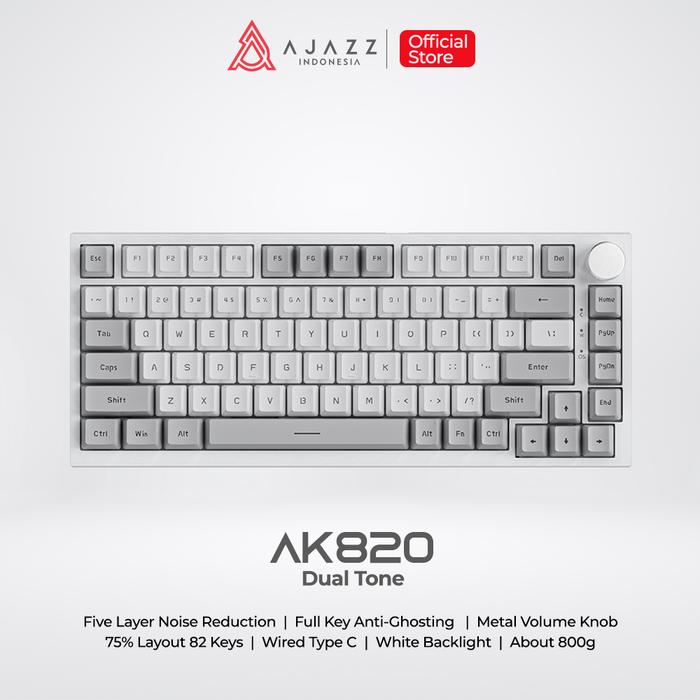 Ajazz Ak820 Dual Tone 75 PERSEN Mechanical Keyboard Wired White Backlight Grey Keycaps - White Grey, Yellow Switch