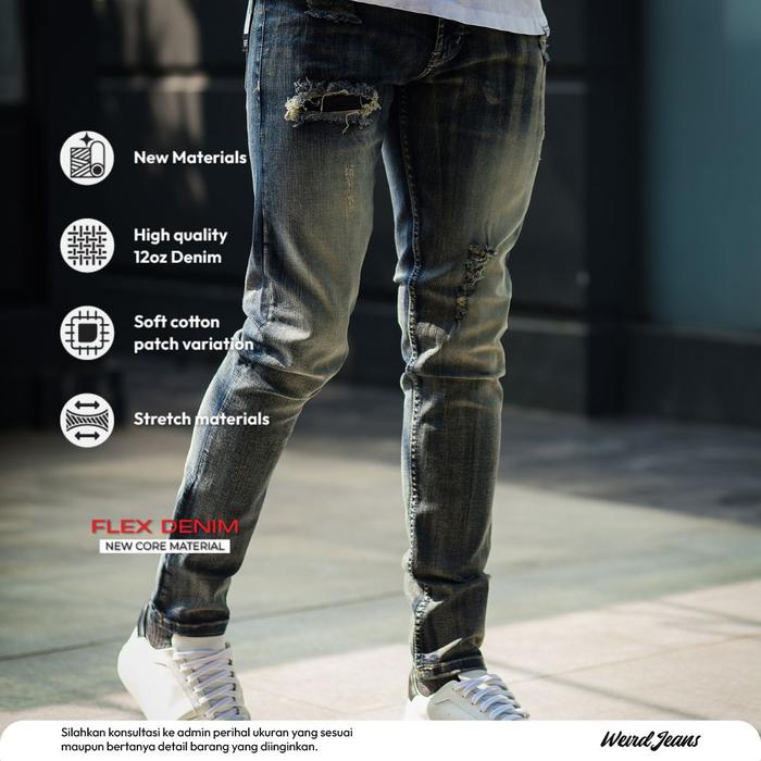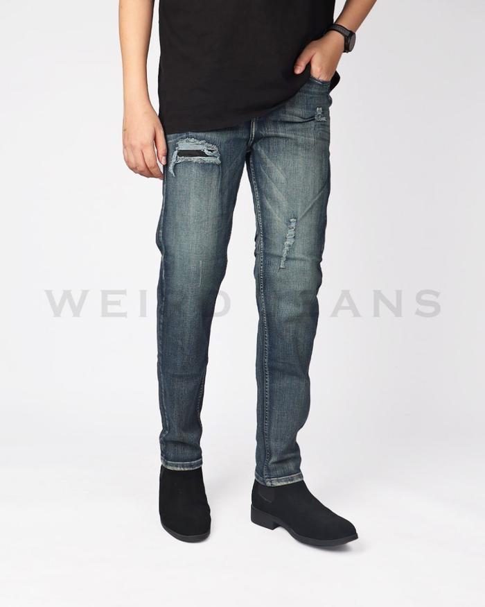 Weird Jeans - Blue Greenish - Celana Jeans Pria Slimfit Strech Biru Denim Fit Nyaman Stretch Grey Ripped Panjang - Green