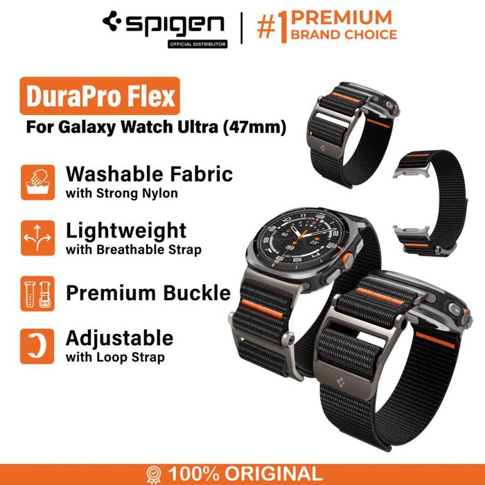 Strap For Samsung Galaxy Watch Ultra 47Mm Spigen Durapro Band Premium Fabric Loop Stylish Sport Flexible - Black, 47Mm