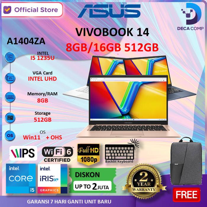 Asus Vivobook 14 I7-1355U/I5-1334U/I3-1315U 8Gb/16Gb 512Ssd W11+Ohs 14.0 Fhd Ips/A1404Va/A1404Za - Non Bundle, Core I3 8