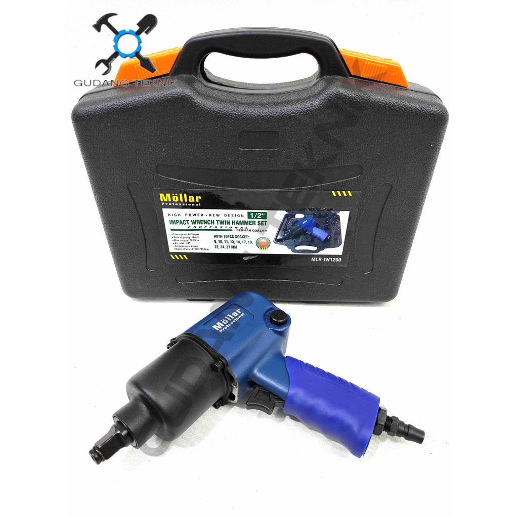 Air Impact Wrench 1/2" Twin Hammer MlrIw1200 / Alat Pembuka Buka Baut Angin Impek 1/2 Inch Mlr Iw 1200//2000 Mollar