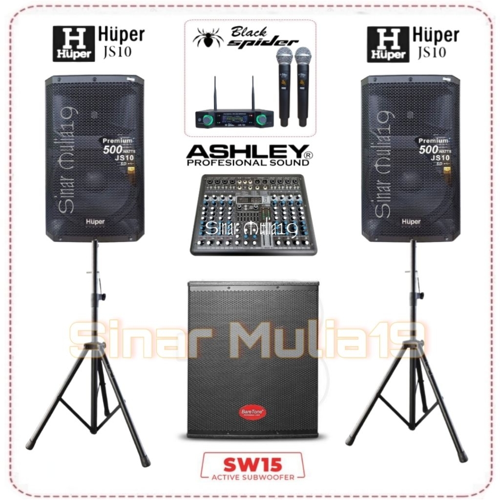 Paket Sound System Speaker Aktif Huper JS10 Subwoofer BareTone SW15 Mixer Ashley 8 Channel Original