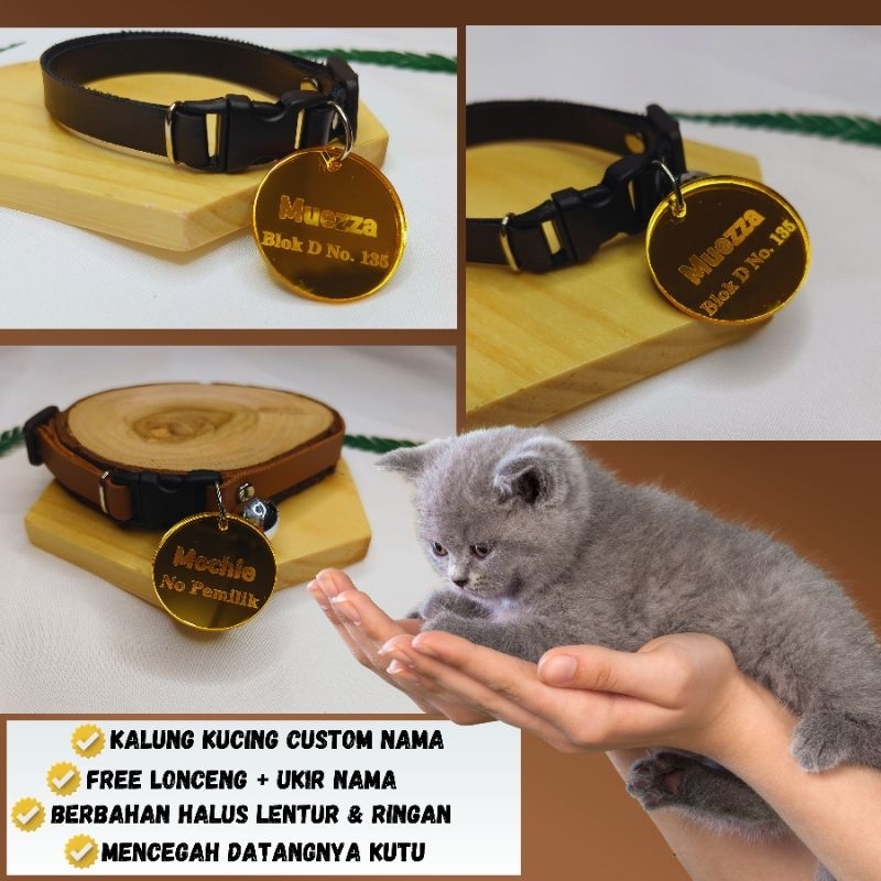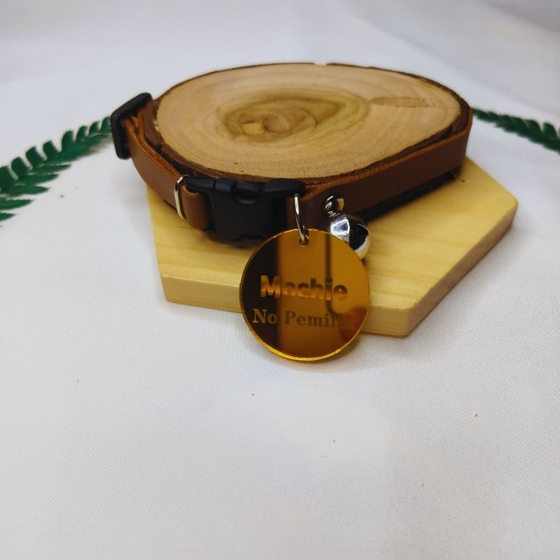 Kalung Kucing free ukir nama + lonceng nyaring bahan kulit dan akrilik premium termurah