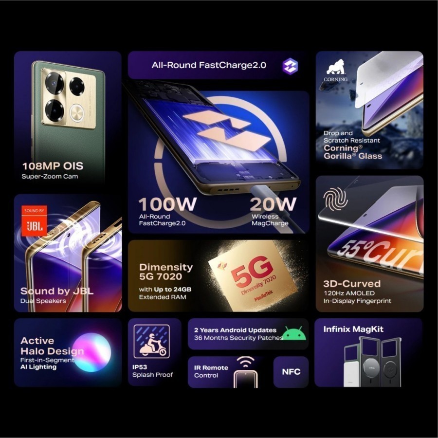 Infinix Note 40 Pro 5G+ Official Store 8/256gb Up To 16gb Extended Ram Dimensity 7300 Ultimate 6.67” Hd+50mp Ois 5200Mah