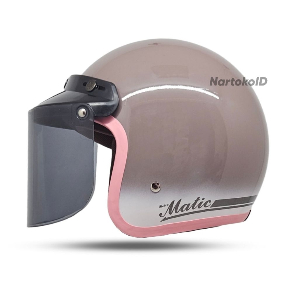 Helm Bogo Wanita Garis Gradasi List Pink Motorcycle SNI