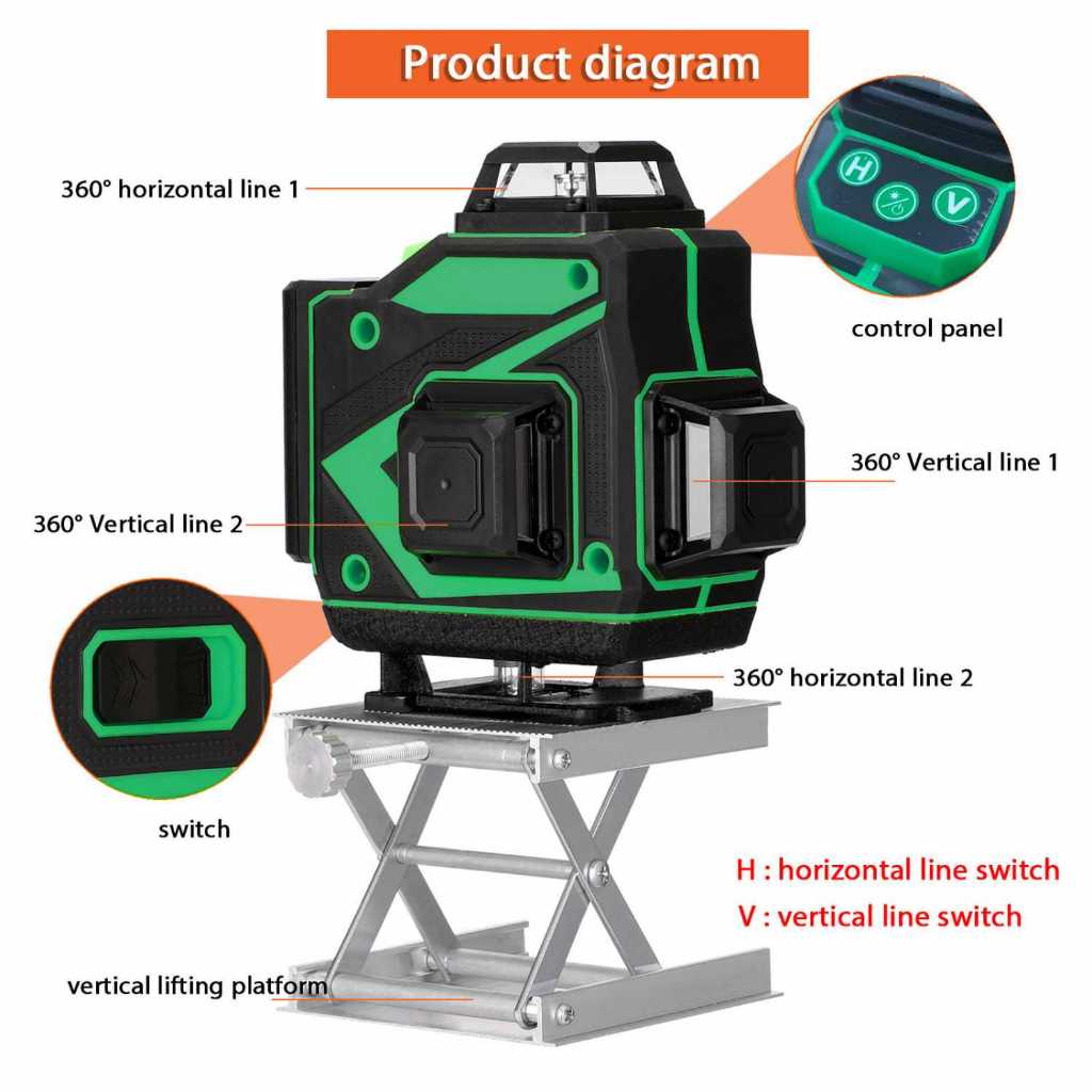 Taffware Laser Level Self Leveling 4D 16 Lines 2400mAh with Remote - KK-36