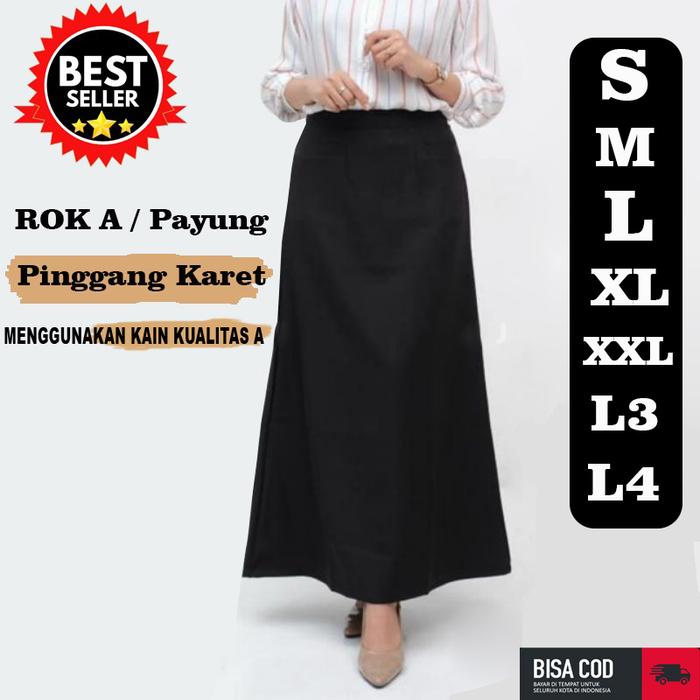 Rok Kerja Line A Rok Panjang Wanita Kantor Casual Hitam Cewek Dewasa - Hitam, S