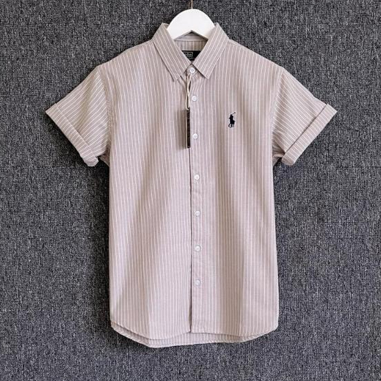 Kemeja pendek pria I Kemeja Salur Lengan pendek slimfit casual I Kemeja pria formal premium