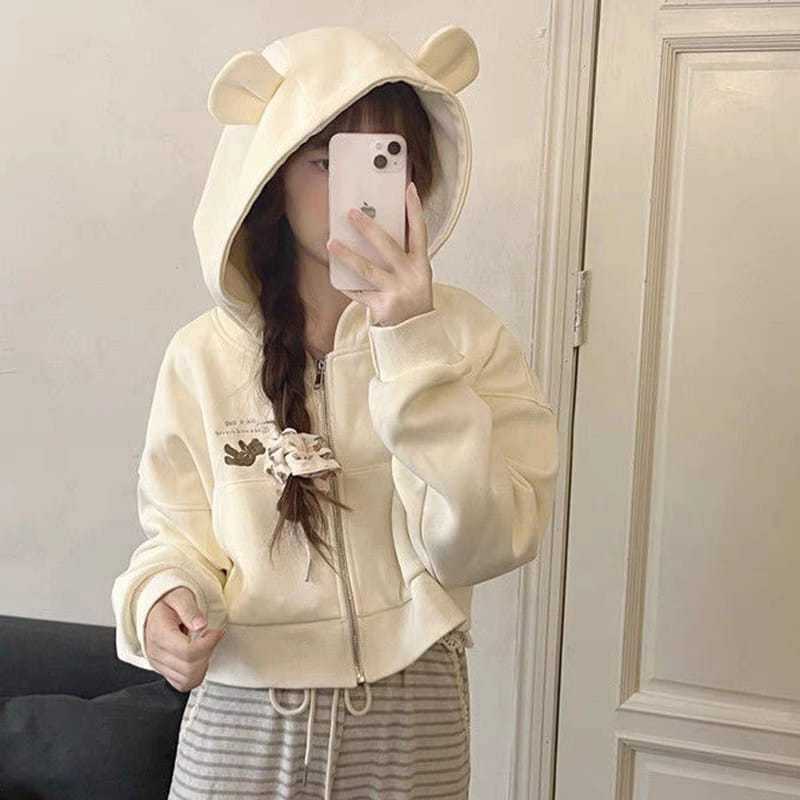 Aseo.official Jaket Like A Doll jacket Crope Wanita Jaket Zipper Wanita Korean Style Jaket Fee Bear Korean
