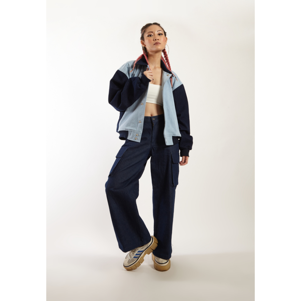 OCWA DOMINIQUE OVERSIZED BOMBER NAVY BLUE DENIM JACKET WOMAN