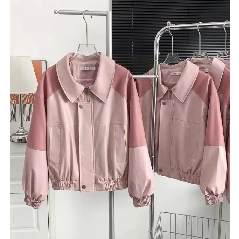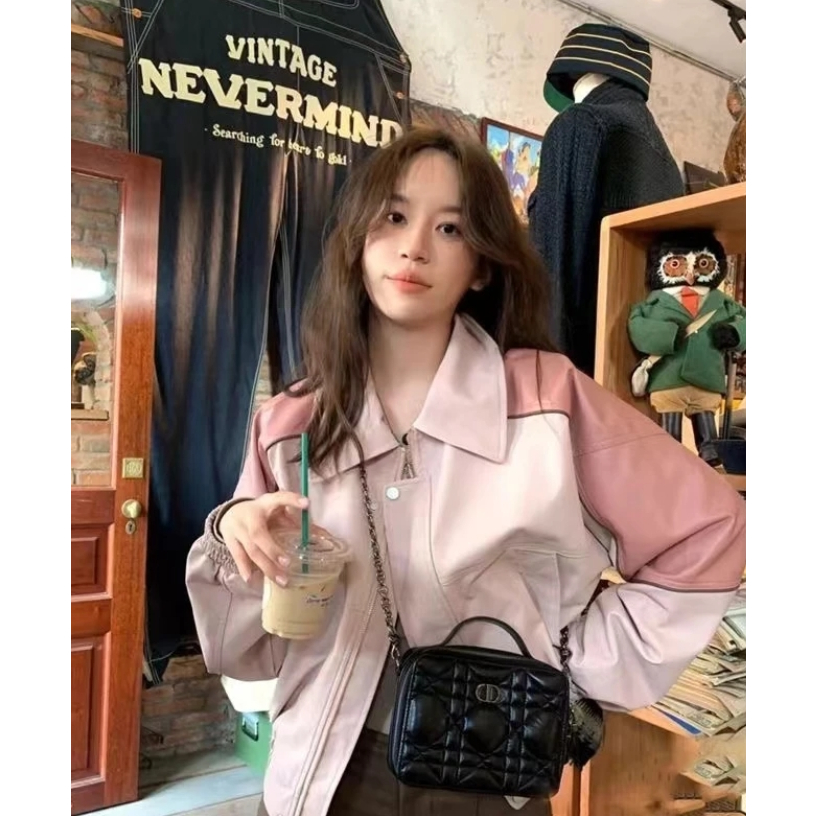 Premium leather Jaket Wanita Kulit Elegant Pink-Jaket CropKulit Oversize Leather Jacket Wanita