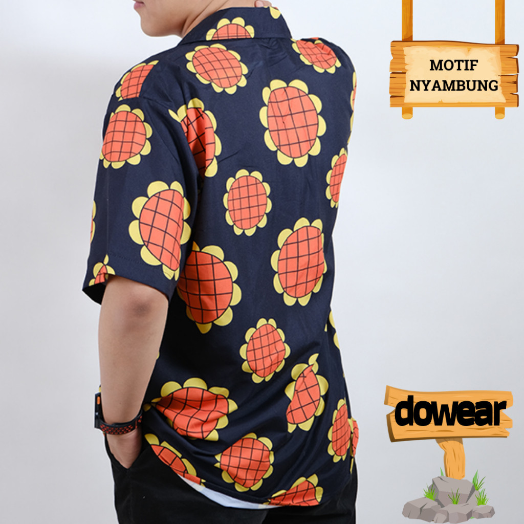 Dowear Baju Shirt Kemeja Lengan Pendek Anime Pria Wanita Motif Full Printing kartun LUFFY FLOWER 120