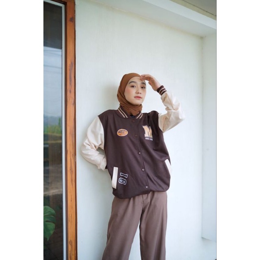 N Coack Jaket Baseball Wanita Oversize Size M.L.XL | Jaket Varsity Baseball Wanita Oversize | Jaket Korean Style
