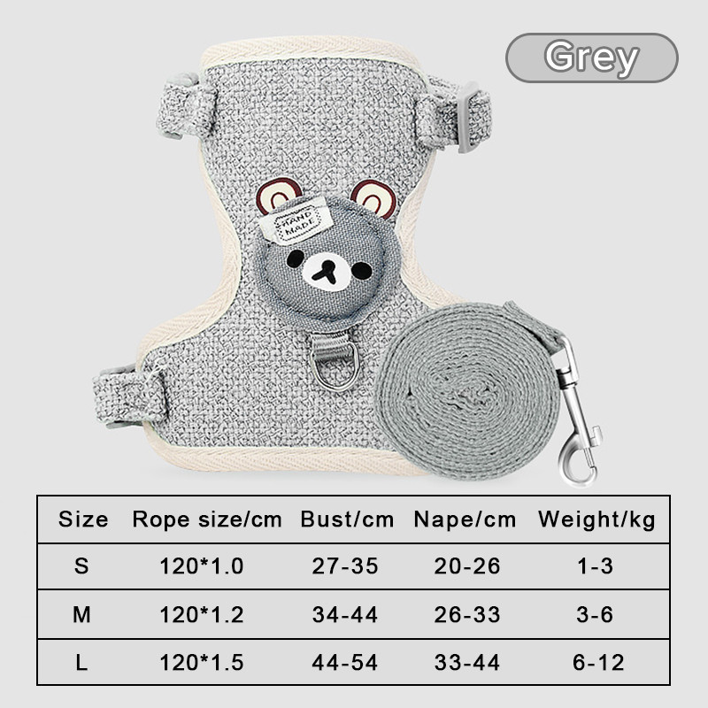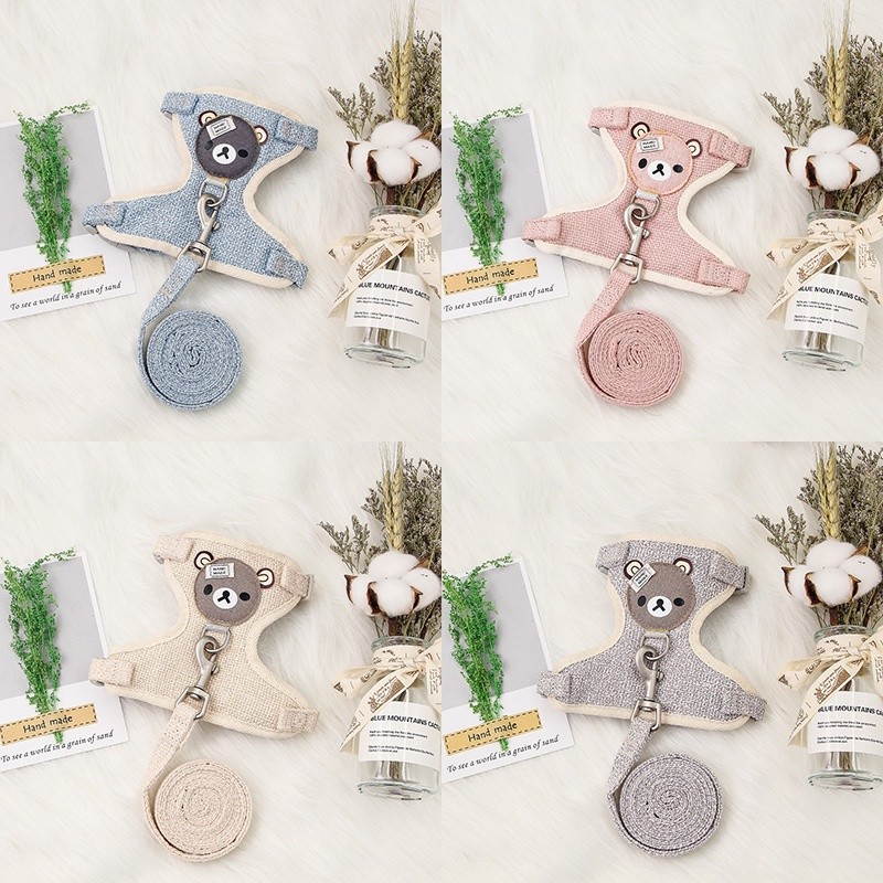kucing kelinci hewan Harness hewan peliharaan dengan tali untuk anjing kecil pola beruang lucu harness