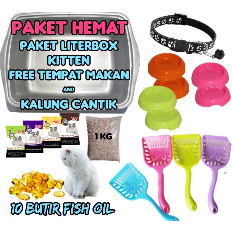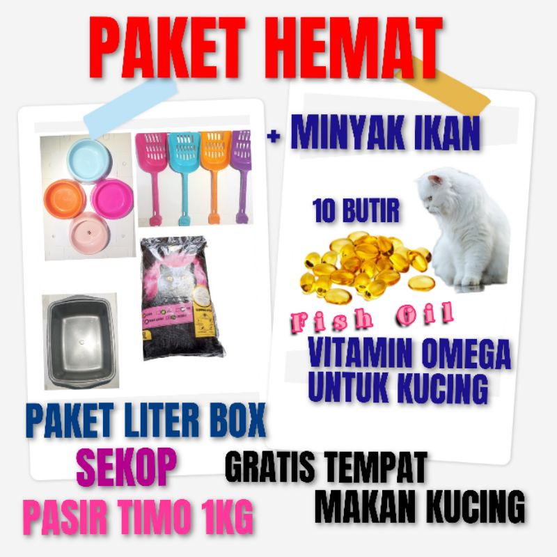 PAKET BAK PASIR + Sekop +1KG Pasir Gumpal Wangi BENTONITE TIMO,TOFU(500GR), GRATIS TEMPAT MAKAN KUCI