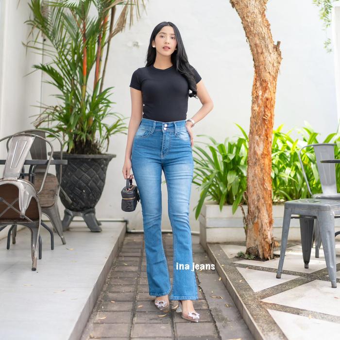 [ Ina Jeans ] Highwaist Cutbray Jeans Retro 2 Button Edition - Celana Jeans Cutbray Wanita Panjang Kancing 2 - Cutbray R
