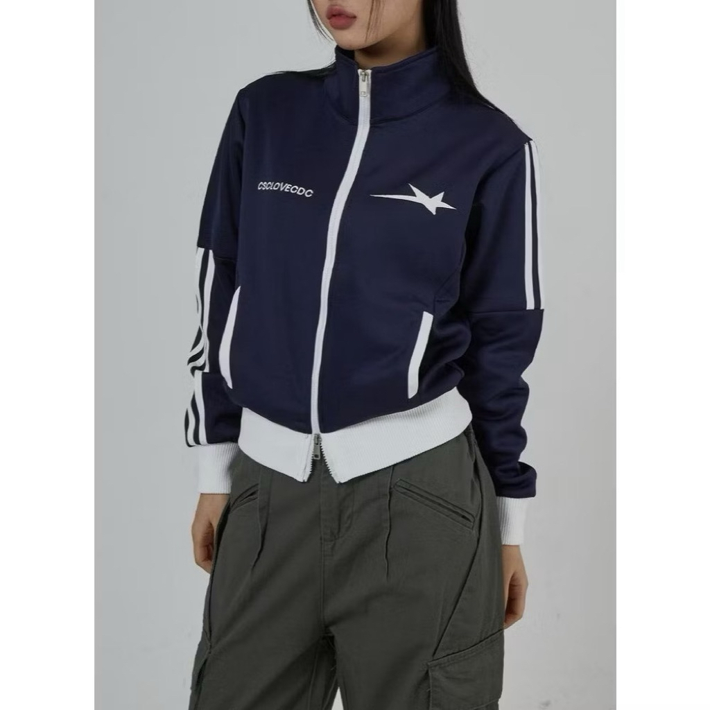 GUEST STAR LOVE JAKET WANITA LIST STRIPE JAKET ZIPPER KOREAN STYLE