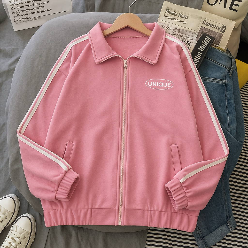 UNIQUE JAKET WANITA LIST STRIPE JAKET ZIPPER KOREAN STYLE
