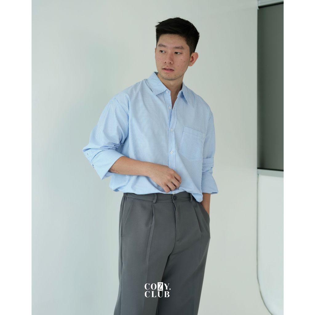COZYCLUB Stripe Oversized Longsleeve Shirt | Kemeja Stripe Oversize Pria Lengan Panjang | 301
