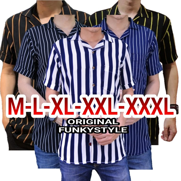 KEMEJA SALUR STRIPE PRIA LENGAN PENDEK KEMEJA SALUR OVERSIZE TERBARU TERLARIS