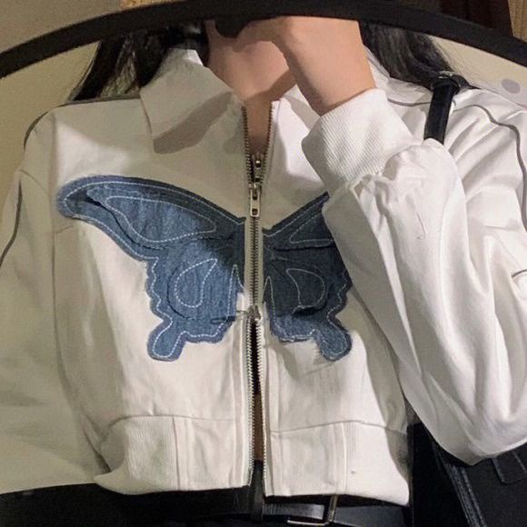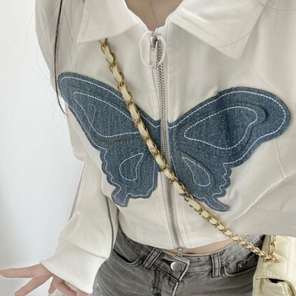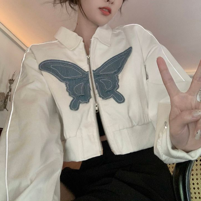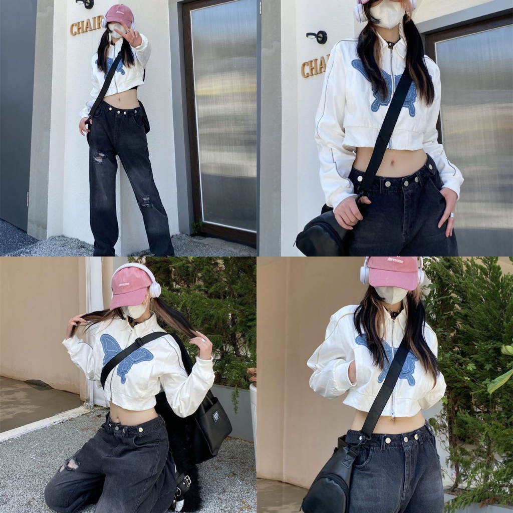 Nico##Zipper jacket crop/Jaket Croope Wanita Motif Bordir Butterfly