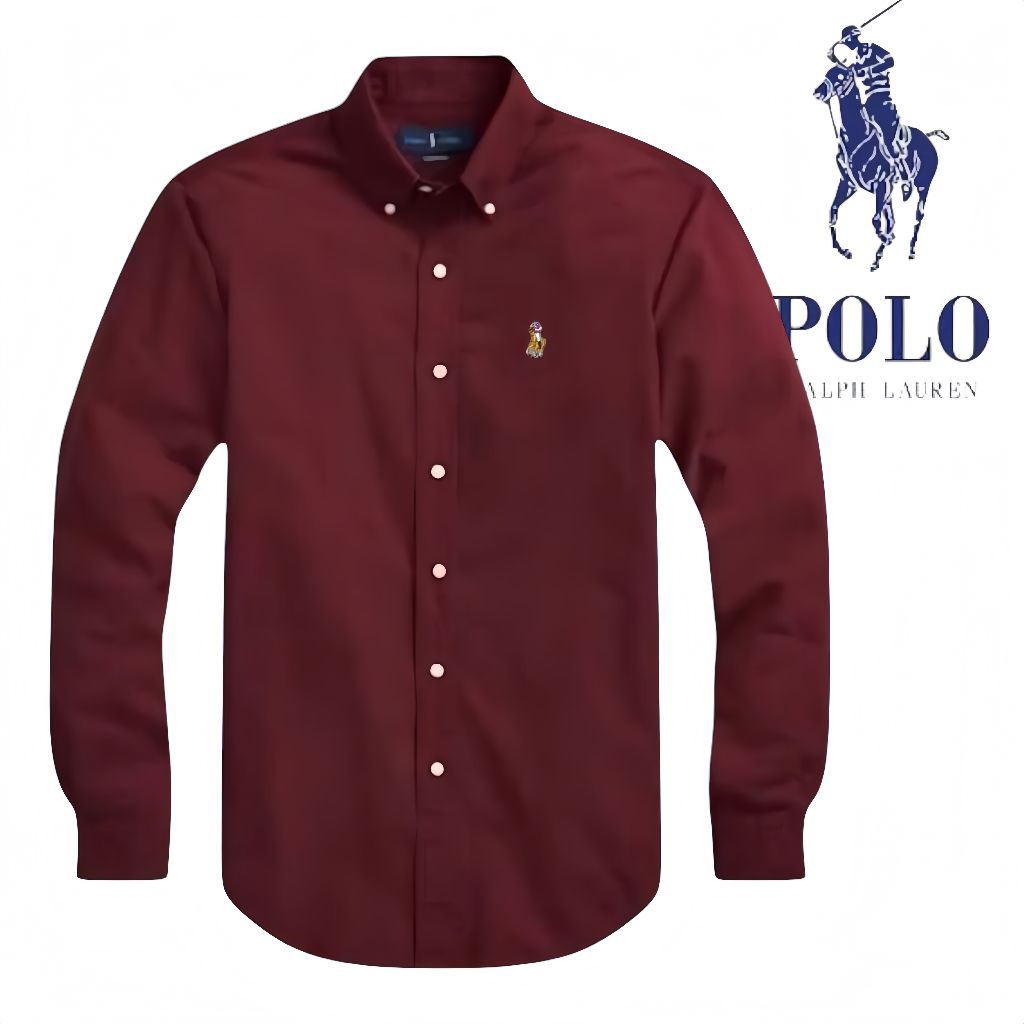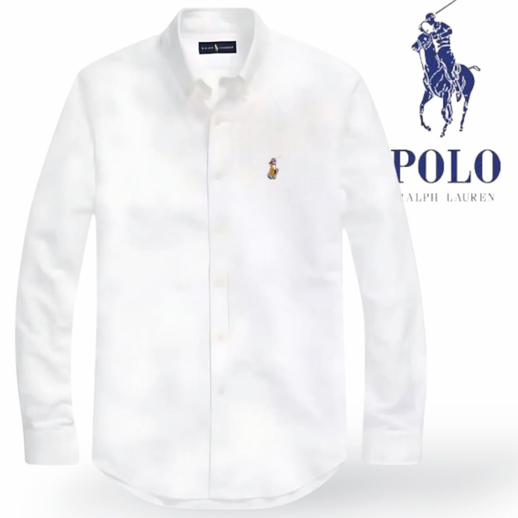 Kemeja Polos Pria Lengan Panjang Ralph Lauren Putih Elegan Premium Stylish