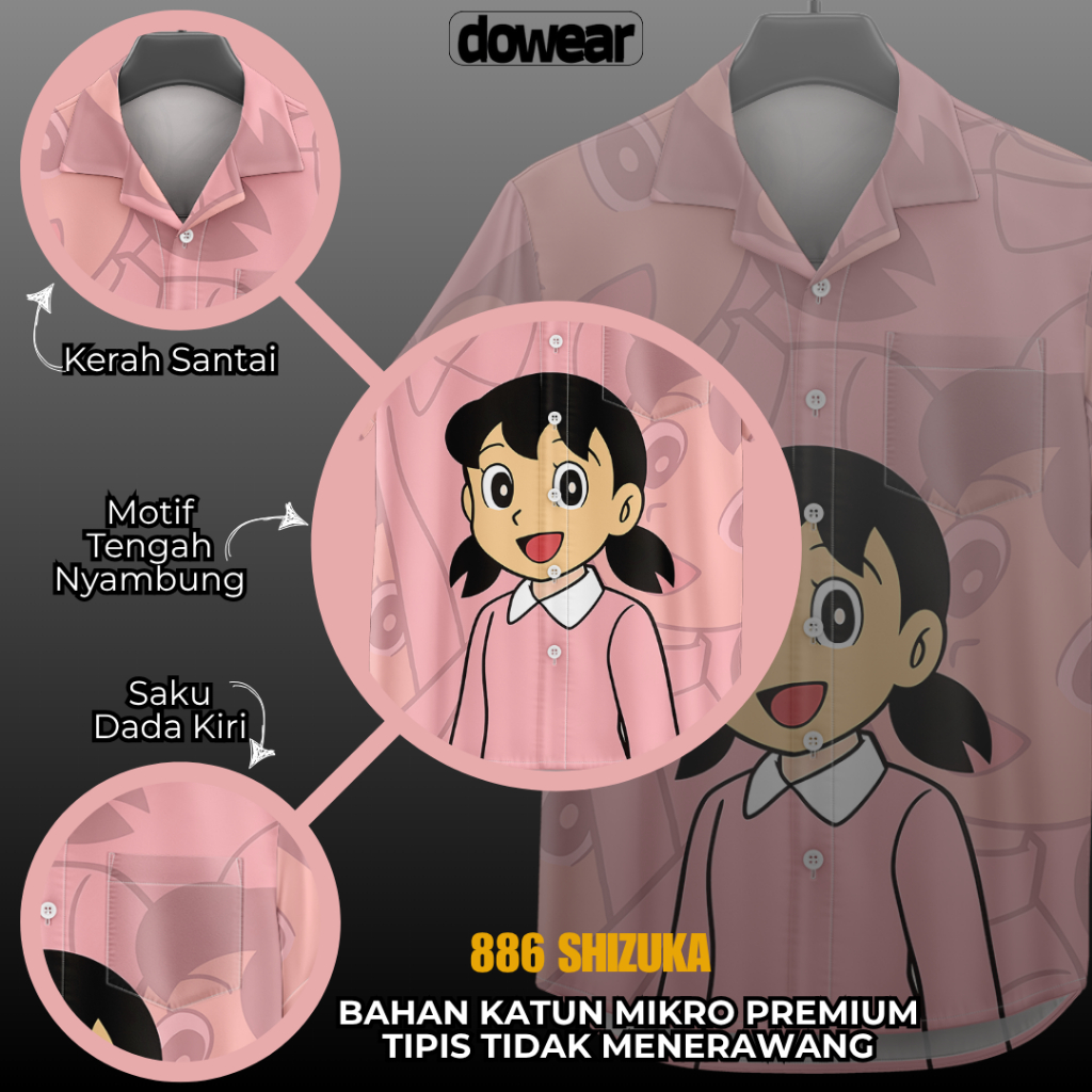 Dowear Baju S-5XL Kemeja Pria Wanita Doraemon Lengan Pendek Motif Printing 886 SHIZUKA