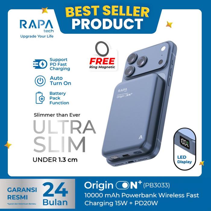 [Ccc Certified] Rapatech Powerbank Origin On Grey Edition / Origin On+/ Qi2 Led Display 10000 Mah Mah Wireless Fast Char