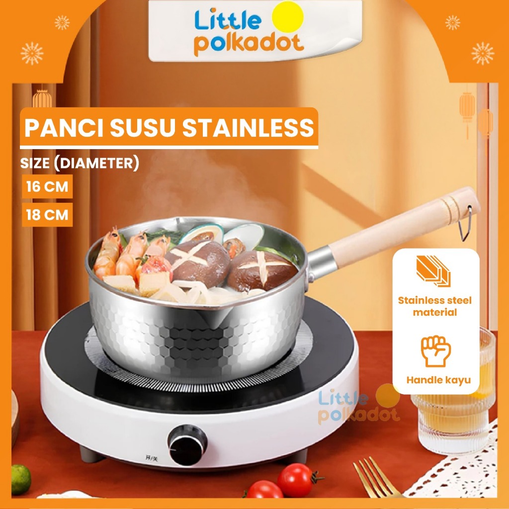 Littlepolkadot Panci Mie Premium Panci Susu 304 Stainless Steel Anti Lengket Bahan Tebal Panci Mie Rebus Sayur Sup Food