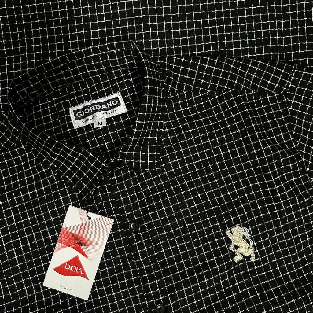 Kemeja Kotak Halus New Pria GIORDANO 3D Lengan Pendek | Kemeja Stripe Formal Bisnis Pria | Kemeja Slim Catton Pria | Kemeja All Variant Kerja Pria