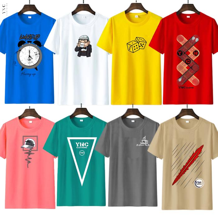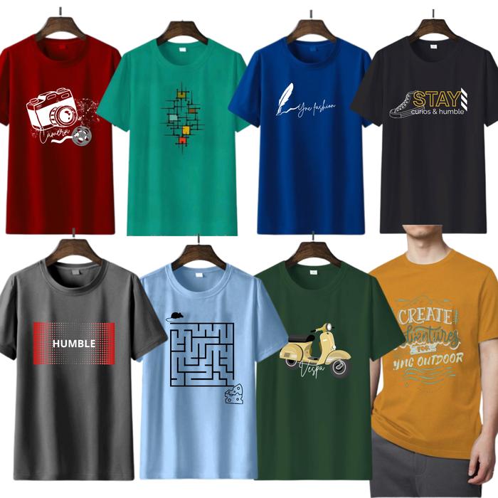 Paket Kaos Motif 12 Pcs 1 Lusin Kaos Random Cerah Gelap Baju Dewasa Lengan Pendek - Cerah, Size L 12 Pcs