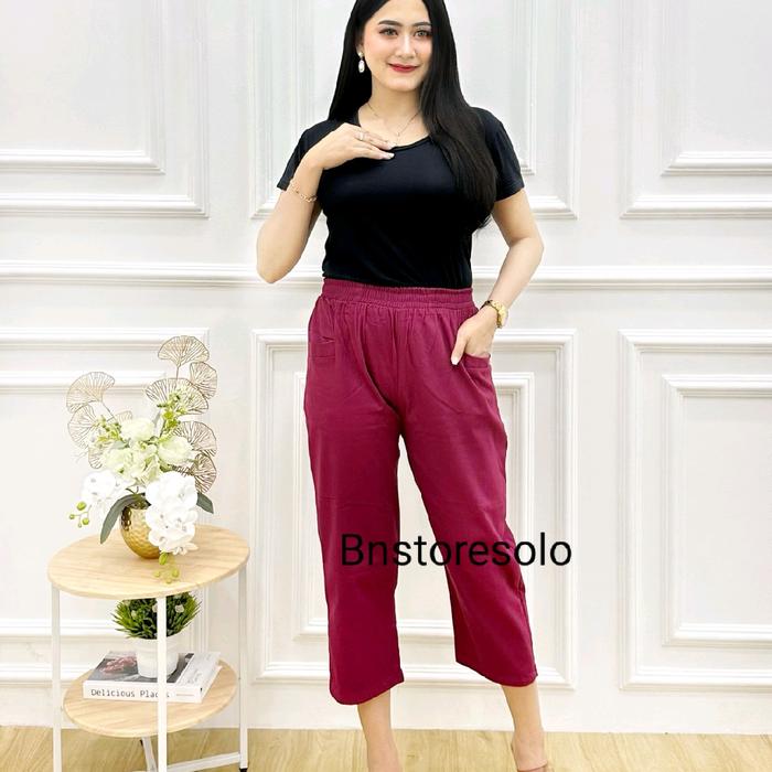 Unqoo Pants Bahan Cotton Twill Size L - Xl - Xxl - Xxxl Celana Panjang Wanita 7/8 Style Pinggang Full Karet - Mocca, L
