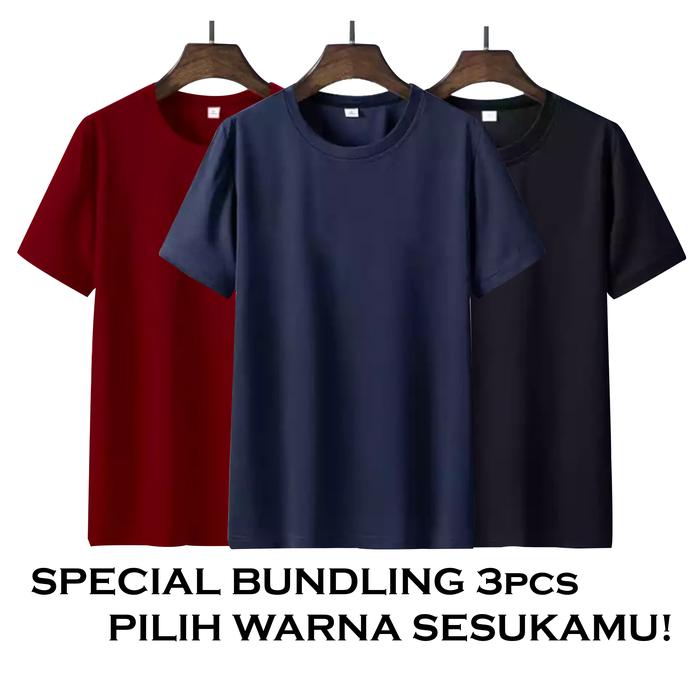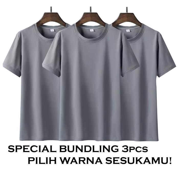 Bundle 3Pcs Kaos Polos Pilih Warna Sekukamu T-Shirt Pria Lengan Pendek Kaos Oblong - Hitam-Abu-Putih, M