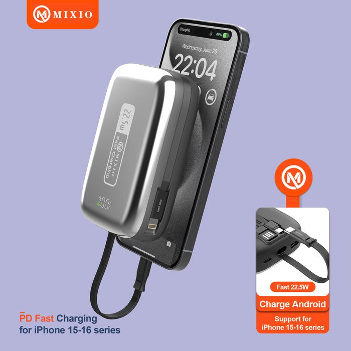 Mixio Mp-14 20000Mah Small Size Powerbank 22.5W With Kabel Fast Charging Lightning & Type C & Micro Usb For Iphone/Andro