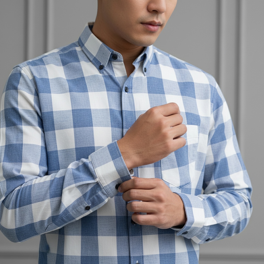 SAIZ GLORY Kemeja Pria Lengan Panjang Bahan Flanel Motif Kotak Kotak