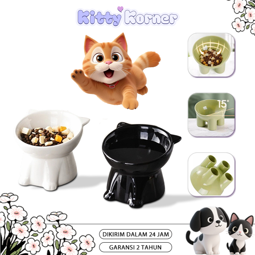 Pet Feeder Bowl-Tempat Makan Atau Minum Hewan Kucing Anjing-Kaki Tinggi/Pet Bowl Neck Protection